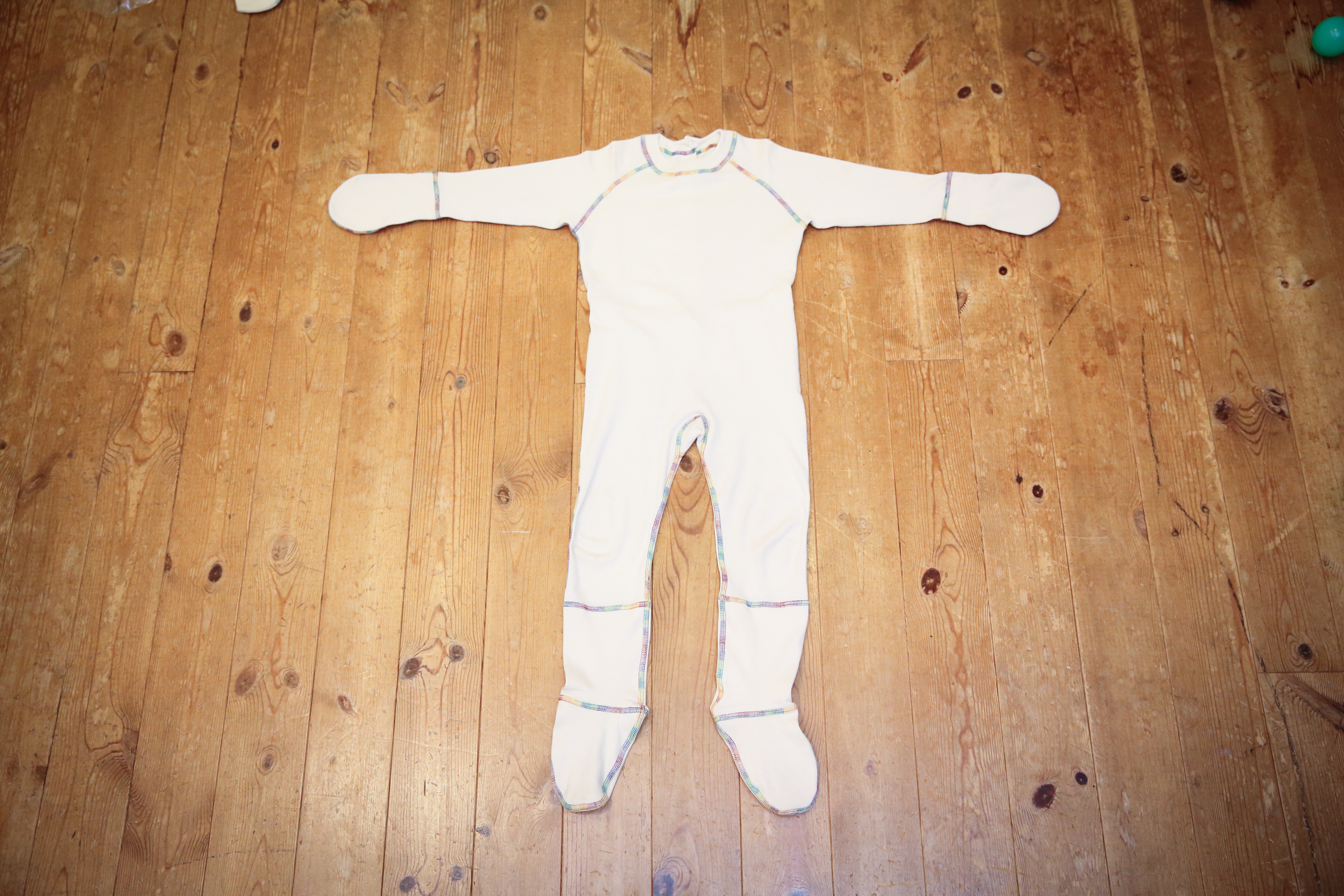 - よく掻く部分の布は二重に作られ、手の入る隙間のない上下つなぎのパジャマ