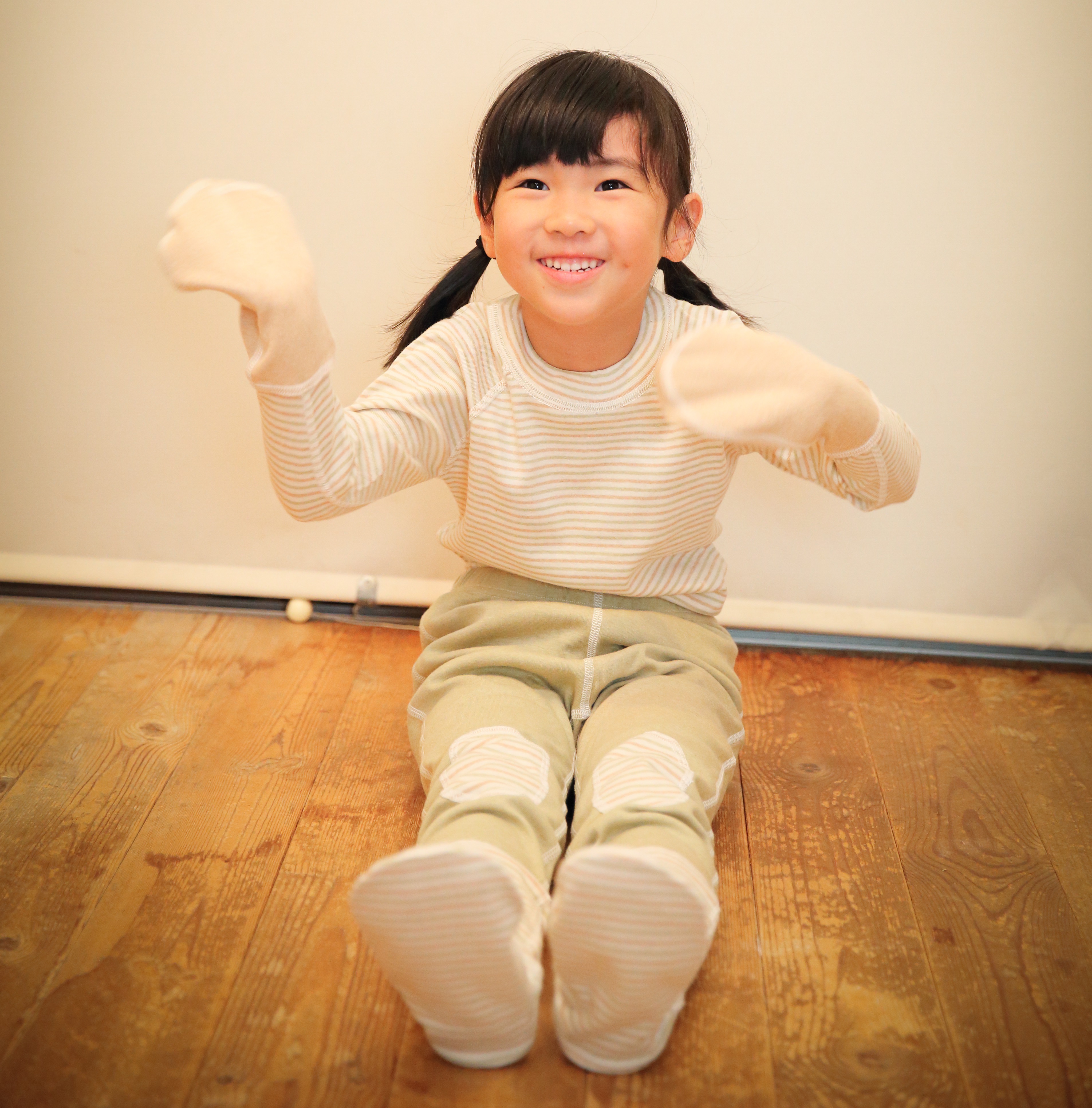 (手袋付きTシャツ、足つきズボンの上下セパレートのパジャマ)